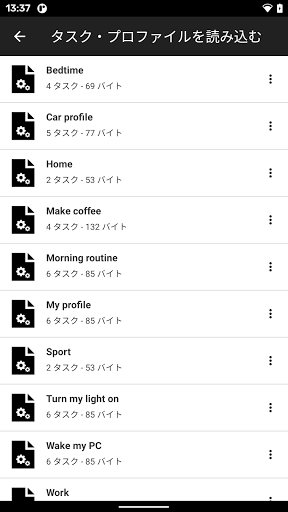 例えば、1.Bluetoothをオンにし、2.アラームを設定し、3.音量を調整して、4.WiFiネットワークを接続する、など、一気にまとめて自動化してタスク操作が完了します。