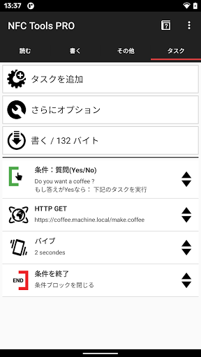 - タスクを実行するには、無料アプリ NFC Tasks が必要です。