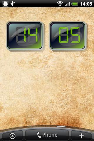 Digital clock widget for your android phone or tabletThis widget is an electronic clock in digital style covered with glass.Widget supports 24 hour and 12 hour format . Displaying format depends on system settings. Time to display is also getting from system current time.Three color themesare available: orange, green and blue. Change it by clicking on widget.Please email me if you found some problems with using this widget or you have suggestions how to improve it