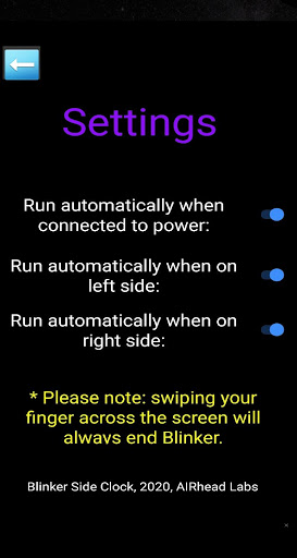 Blink Side Clock not only has a blinking colon (which, by the way, makes other digital clocks look obsolete) but it also lets you choose whether you'd like it to AUTOMATICALLY come on when your device is on a particular side (left and/or right) AND when its connected to power!