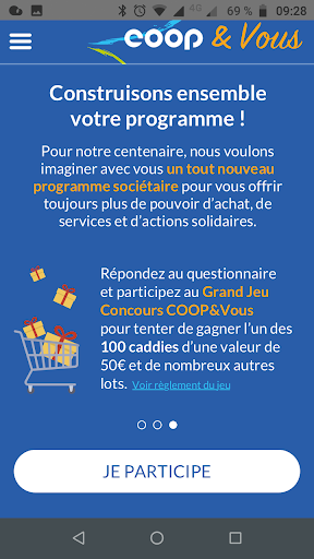 Téléchargez gratuitement l’application Coop&Vous pour donner votre avis sur le futur programme des Coopérateurs de Normandie Picardie. Des centaines de bons d’achats et de caddies à gagner !