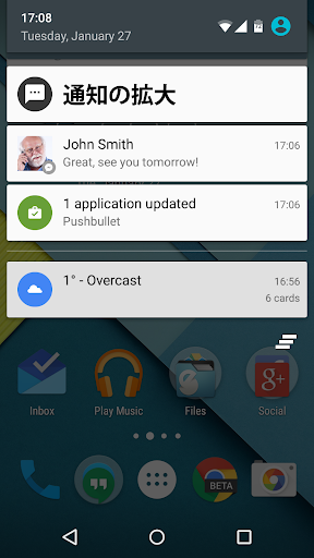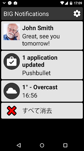 ✓ オリジナルのアプリを開かずに、拡大された文字で通知操作ができる