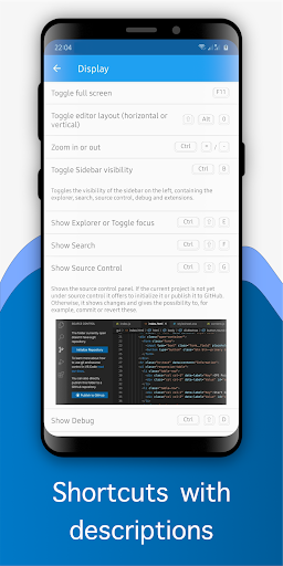 このアプリは、Visual Studioコードの150以上のキーボードショートカットを含みます。すべてのキーボードショートカットはオフラインで利用可能で、さまざまなカテゴリによってソートされています。それを説明する各ショートカットにも役立ついくつかの説明を追加しました。さらに、キーボードショートカットを検索する可能性があります。