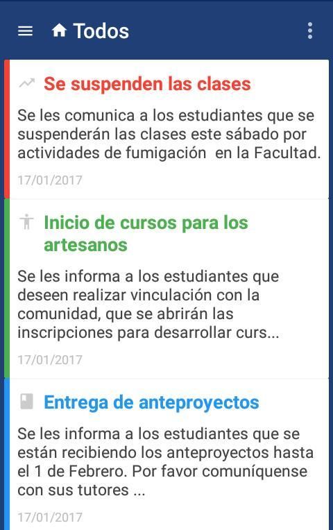 This pilot project is a technological solution that aims to inform real-time publication of events and activities in the areas of Titration, community outreach, Practices prevocational, Student Welfare, Management and Accreditation of the Bachelor in Information Systems through PUSH notifications.