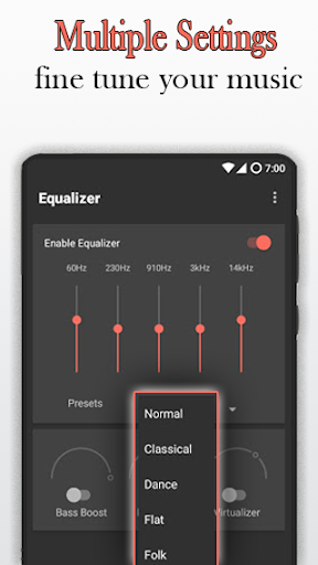 equalizer for android allows you to improve the sound quality of your android device in order to obtain better satisfaction while playing music.