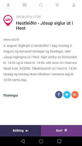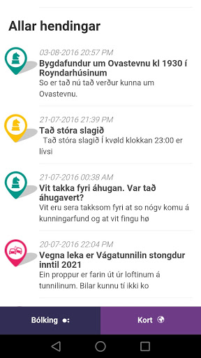 The relevant information will be received as a notification and can be accessed later on a sortable list as well as on a map. Marks on the map will represent the information accordingly. If you want further information, a link will redirect you to the relevant web site.