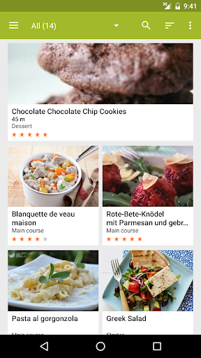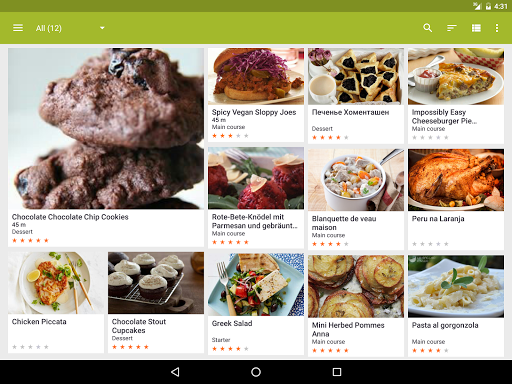 • Androidアプリケーションとオンラインアカウント間で、最大105件のレシピと8件の買い物リストを同期化する