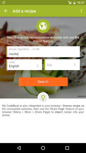 新しいレシピをお探しですか?弊社の検索エンジンを使ってウェブ上で新しいレシピをお探しください。お気に入りのレシピを見つけたら、My CookBookにインポートしましょう。どこにいても携帯電話やタブレット上でそのレシピを見ることができます。また、写真を追加したり、材料や作り方を変更したり、コメントを追加したりできます。