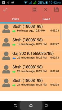 Recorded calls are stored in the Inbox. You can change the destination recordings folder to an external SD card as well. You can set the size of the inbox. The number of saved calls is limited only by your device memory. If you decide that a conversation is important, save it and it will be stored in the Saved Calls folder. If not, old recordings will automatically be deleted when new calls fill up the inbox.