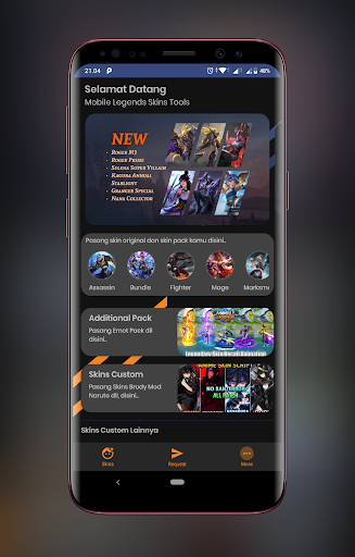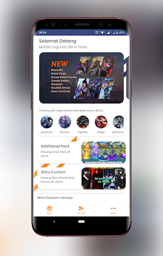 Skin Config App ダウンロードしてインストールできる多くのMODスキンを持つアプリケーション。 魅力的な外観を持つアプリケーションで、7MB、軽くて速いです。 アプリケーションはSkinWlodファイルをダウンロードし、Asset Fileをカスタムファイルに置き換えるために、Assetファイルをカスタムファイルに置き換えるために抽出します。