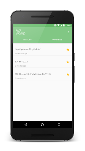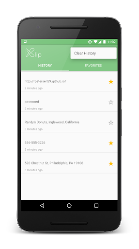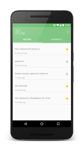 Keep track of everything you've copied on your phone with Klip, the simple Android clipboard. Klip keeps track of all text copied on your phone and allows you to recopy and favorite that text to save it forever. Klip adheres to Android's Material Design guidelines and uses new Android UX philosophies to allow it to be easy to use. Never lose your friend's address, that restaurants name, or that girl's phone number again. Available for Android 4.2 and above.
