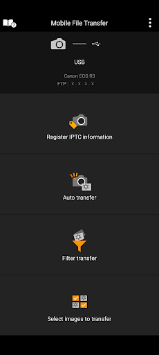 Canon Mobile File Transfer is an application for professional photographers to transfer photographed images to FTP, FTPS, or SFTP servers via mobile devices.