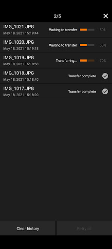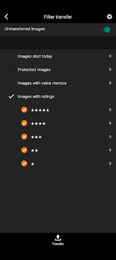 - "Auto transfer" for capturing and transferring images captured by the camera as they are, "Filter transfer" for transferring images based on set conditions, and "Select images to transfer" for transferring images by selecting specific images from the images in the camera are possible.