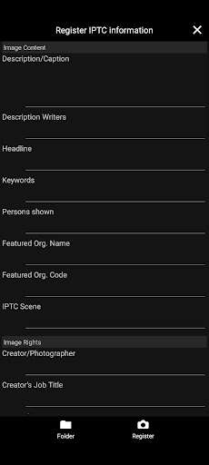 - For images to be transferred to FTP, SFTP, or FTPS servers, voice memos can be added and IPTC* metadata can be edited in the application.