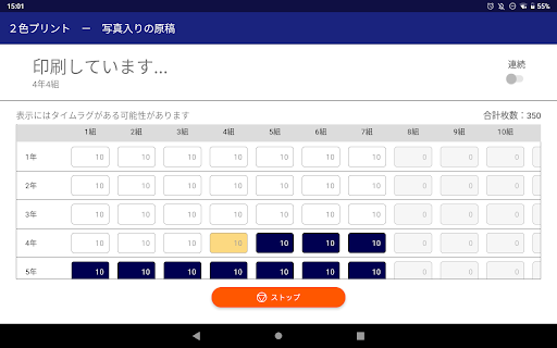 学級ごとの仕分けプリントに便利な「プログラム印刷」機能を搭載しており、「合紙仕分け」または「テープ仕分け」と組み合わせて活用できます。(「テープ仕分け」を使うには、オプションのテープソーターが必要です。)