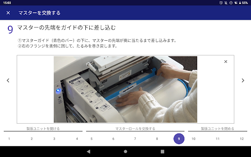 印刷機でエラーが発生すると、対処方法が表示されます。消耗品の交換手順は分かりやすい動画で確認できます。
