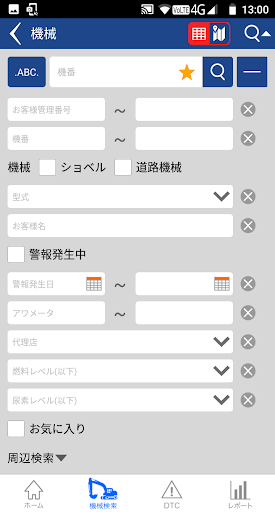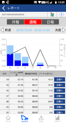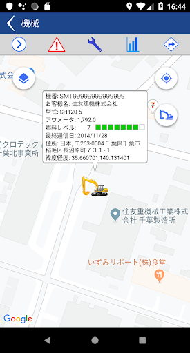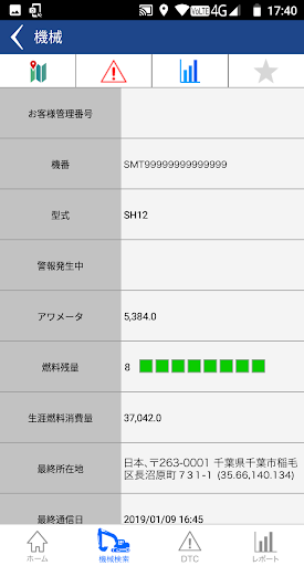 保有機の機械稼働時間、燃料消費量などを確認できます。