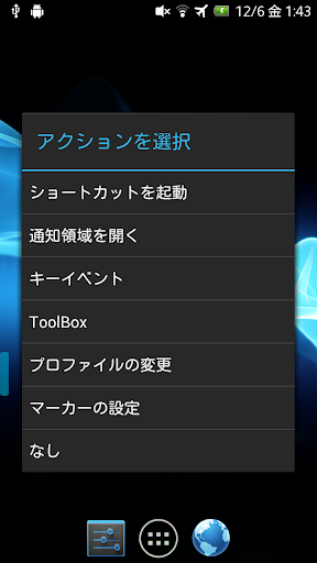 *ToolBoxをインストールすることで画面ロックやWi-FiのOn/Offなどの機能を使えます。