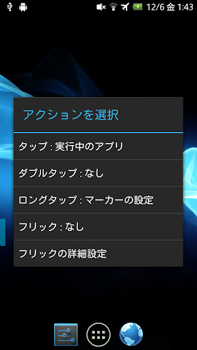 タップのほかにダブルタップ、ロングタップ、フリックそれぞれに異なるアクションを登録することができます。