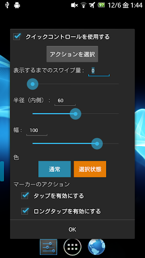 画面に表示されるマーカーをタップすることでアプリやショートカットの起動、通知領域を開くなどのアクションを実行することができます。