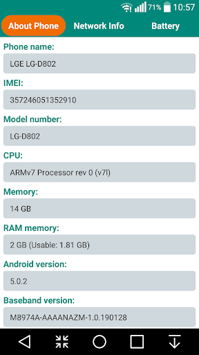 This app provide a tool helps you check the detail information about your smartphone, includes: