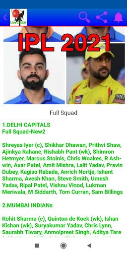 IPLオーディオ解説、ライブスコア、フルスケジュール、チームリスト、クリケットニュースのようなIPL2021のすべての情報を入手してください。 IPL(インドプレミアリーグ)2021参加チームリスト •チェンナイスーパーキングス •Delhi Daredevils •ムンバイインディアン •Sunrisers Hyderabad Sunrisers Hyderabad 公式アプリではなく、解説。