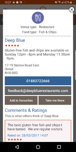 私たちはあなたにとってグルテンの自由を食べることを取り除きました。私たちのアプリはあなたが外出しながら適切な会場を見つけるのを助けます。外出先で食べ物をつかむか、特別な日に適した会場を見つけることができるかどうかを見つけることができます。会場の半数以上が私たちのGF認定を持っているので、あなたは安全な食事を安全に準備し、会場は私たちのグルテンフリースタンダードのすべての側面を満たしています。