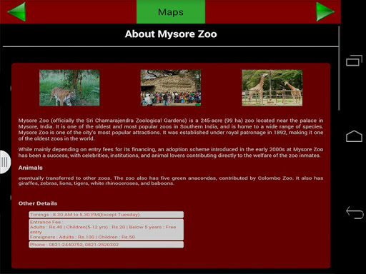 The app is very useful for the people who are interested to know about Mysore, a city in Karnataka, India. The app consists of information about the places in and around Mysore along with google maps integration. It also provides info about restaurants, accommodation, yoga centres in Mysore along with contact information. If you need any sort of travel assistance, then this app is for you.