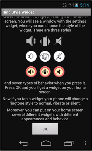 Now if you tap a widget your phone will change a ringtone style to normal, vibrate or silent.
