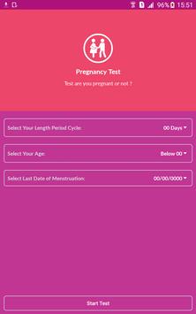 Application is based on the length of your period cycle, your current age, last date of your menstruation and various type of early pregnancy symptoms and signs that will give you ideas to determine whether or not you're pregnant.