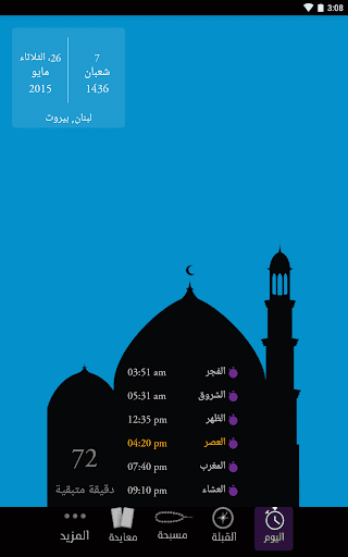 このアプリはGPS位置を使ったあなたの地理的な場所に基づく自動祈りの時間計算を含む幅広いツールを特徴とします