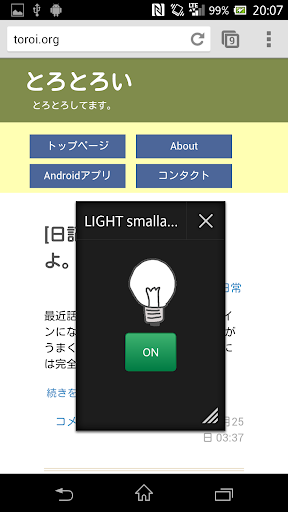ライトを光らせるだけのアプリです。 XperiaシリーズのSmall Appが動作する端末のみインストール可能です。 わざわざライトを光らせるためにアプリを起動する手間がかかりません。 ただそれだけです。 Small apps extension for Sony products