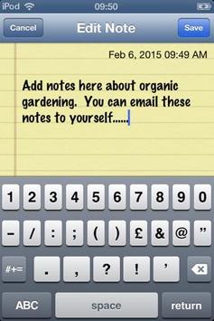 It has several functions to help you with your organic farming methods such as a dedicated gardening diary and the ability to easily make notes and email them to yourself, if you wish.