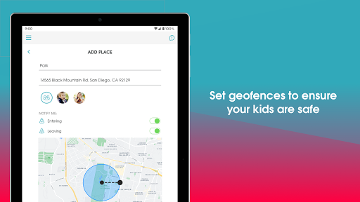 • Geofencing with Places – create GPS geofences around specific locations and receive real-time alerts when their kids leave and arrive at home, school or any set zone