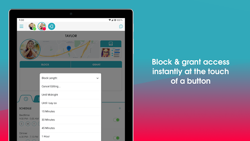 • Set one-time or recurring schedules for your child to manage screen time on-the-go.