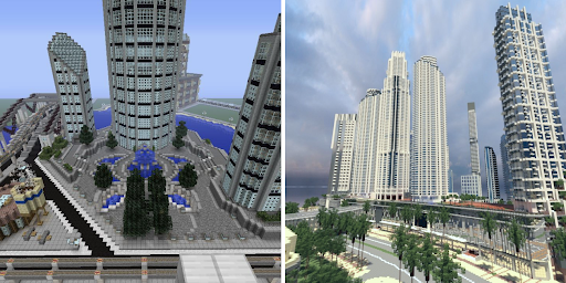 Minecraftのための市の地図は、巨大な都市の中であなたのキャラクターをプッシュするアプリケーションです!経験豊富な選手や初心者にとって、私たちの開発者はキューブの世界を通して新しい旅行であなたを刺激するテクスチャパックを提供しています!大きくて小さい、彼らは楽しく面白い場所でいっぱいです。巨大な集落の景色を楽しんで、その通りを歩いています。そこには、オフィスビル、美しい赤石の家、病院や学校、店やレストランなど、さまざまな建物があります。