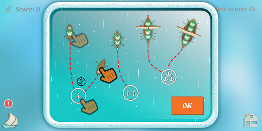 Set the boat route to the right ports by drawing your finger on the screen so that there is no collision with another ship!