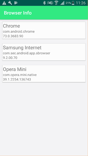 ***THIS IS A DEVELOPER TOOL ONLY*** Mostra a informação dos browsers instalados no dispositivo.