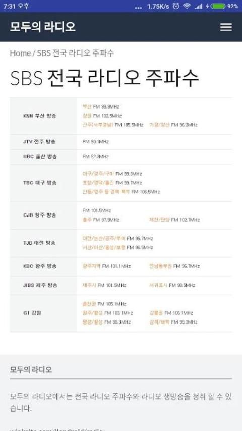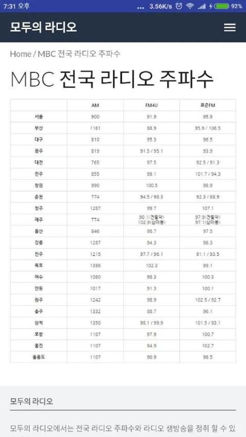 - 한국(KOREA) 40개 이상의 실시간 라디오 청취 가능