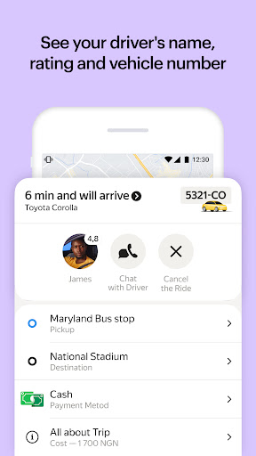 乗車前にドライバーの評価と車番号を学びます。念のため、24時間年中無休のサポートチャットに連絡してください。