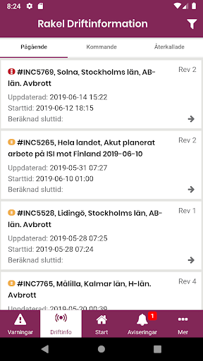 - Kartan har lagts till i översikten för Rakel driftinformation så att man kan se alla arbeten och störningar även i kartvy