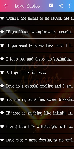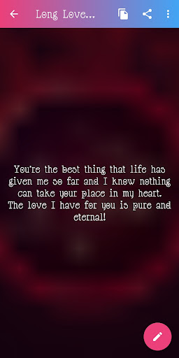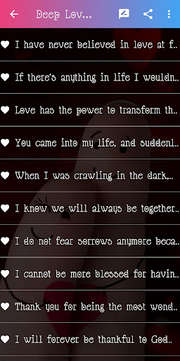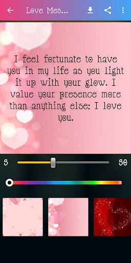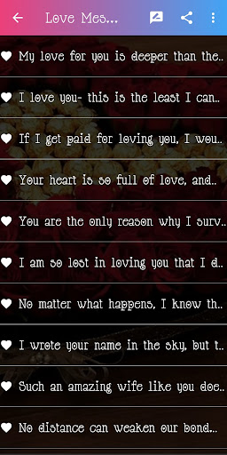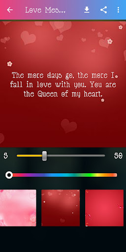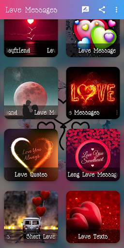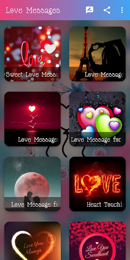 さまざまな背景や異なるテキストの色で愛のメッセージを共有して編集できます。これは、ロマンチックなメッセージ、軽薄なテキスト、短いメッセージ、かわいいメッセージ、SMSの引用を備えたすべての人のためのGood Loveアプリです。