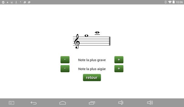- complétement personnalisable: vous pouvez choisir librement les notes que vous voulez travailler (l'ambitus en termes de solfège), sans niveaux prédéfinis.