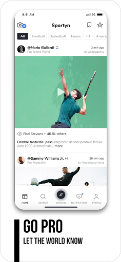 SportyNはアスリートとその支援チームを創造し、共有し、ゲーム/イベントまたは練習セッションのパフォーマンスのパーソナライズされたビデオクリップを宣伝すること、および独自のデジタルスポーツCVS - SportyN IDを作成すること。スポーツクリップとデータを秒単位で記録して公開し、許可されたスカウトやエージェントによって見られる最速の方法を体験してください。ブースターを使用してあなたの最高のクリップを促進し、あなたのプロフィールを獲得し、最高の料金と急上昇します。 SportynのAdvanced AIテクノロジーは、即時の視聴者の前にあなたのビデオを即座に表示し、専門的な成功と運動の成果に向かってあなたの可能性を高めます。さらに、スカウトや他のスポーツが何百万もの日々のアップロードを簡単にナビゲートし、年齢、性別、スキルレベル、または物理的なロケーションにかかわらず、あらゆる運動選手をすばやく見つけることができます。