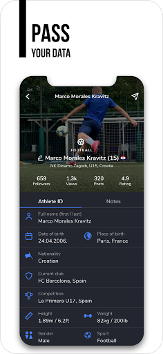 visityn idを簡単に作成して、スポーツ採用担当者、クラブ、ファンの注意を引くためのSportyn ID。あなたの成果、統計、運動の特徴、クラブの歴史、契約、代理店の地位などを記録します。