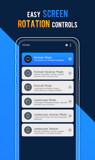 Easy Screen Rotation Managerは、通知パネルを使用して電話スクリーンの向きを制御するのに役立ちます。選択肢の向きに複数の種類があります。選択肢で設定できます。永久的な肖像画、永久的な風景、逆の肖像画、景観、センサーベースのものなどのオリエンテーション。