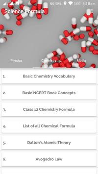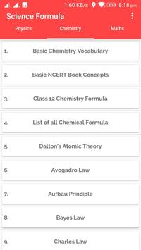 Learn all formulas of physics chemistry and math subjects. Having all A to Z chemical formulas and the A to Z chemical Dictionary. All the major and minor concepts , laws and principle with example.