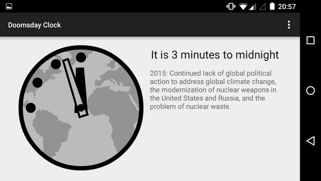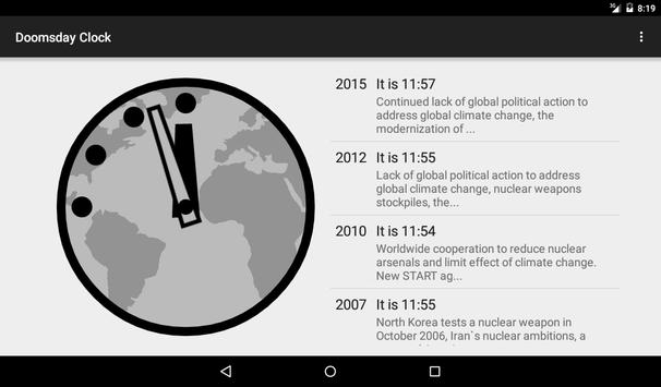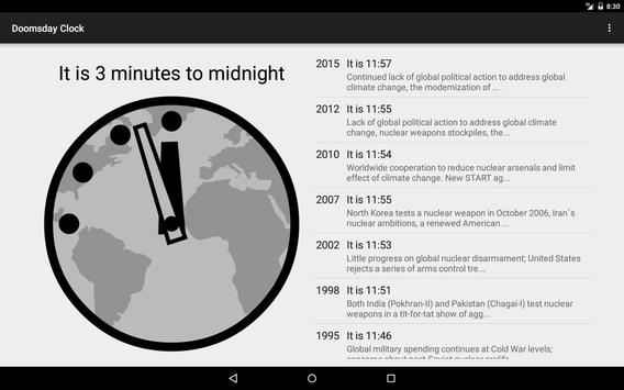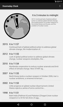 This app gives you an overview about the current and past state of the Doomsday Clock.