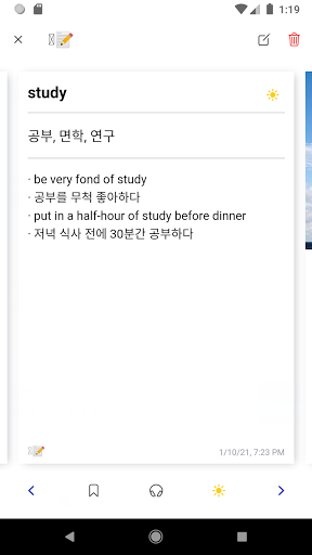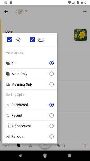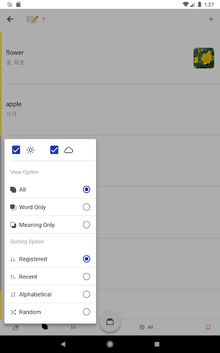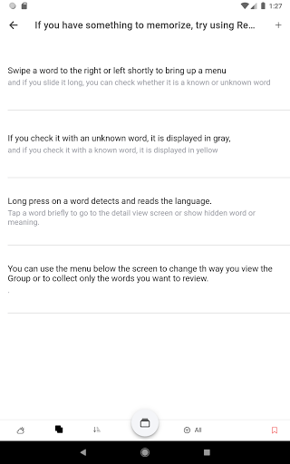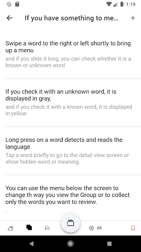 単語リストで左右にスワイプして、あなたが知っているかどうかを確認するかどうかチェックするあなたが今日学んだ言葉または昨日。