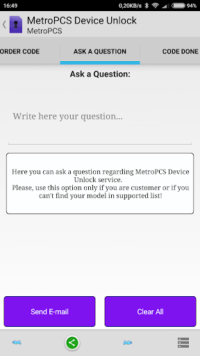 This is an unlocking service for MetroPCS devices with pre-installed Device Unlock App ( ONLY ).